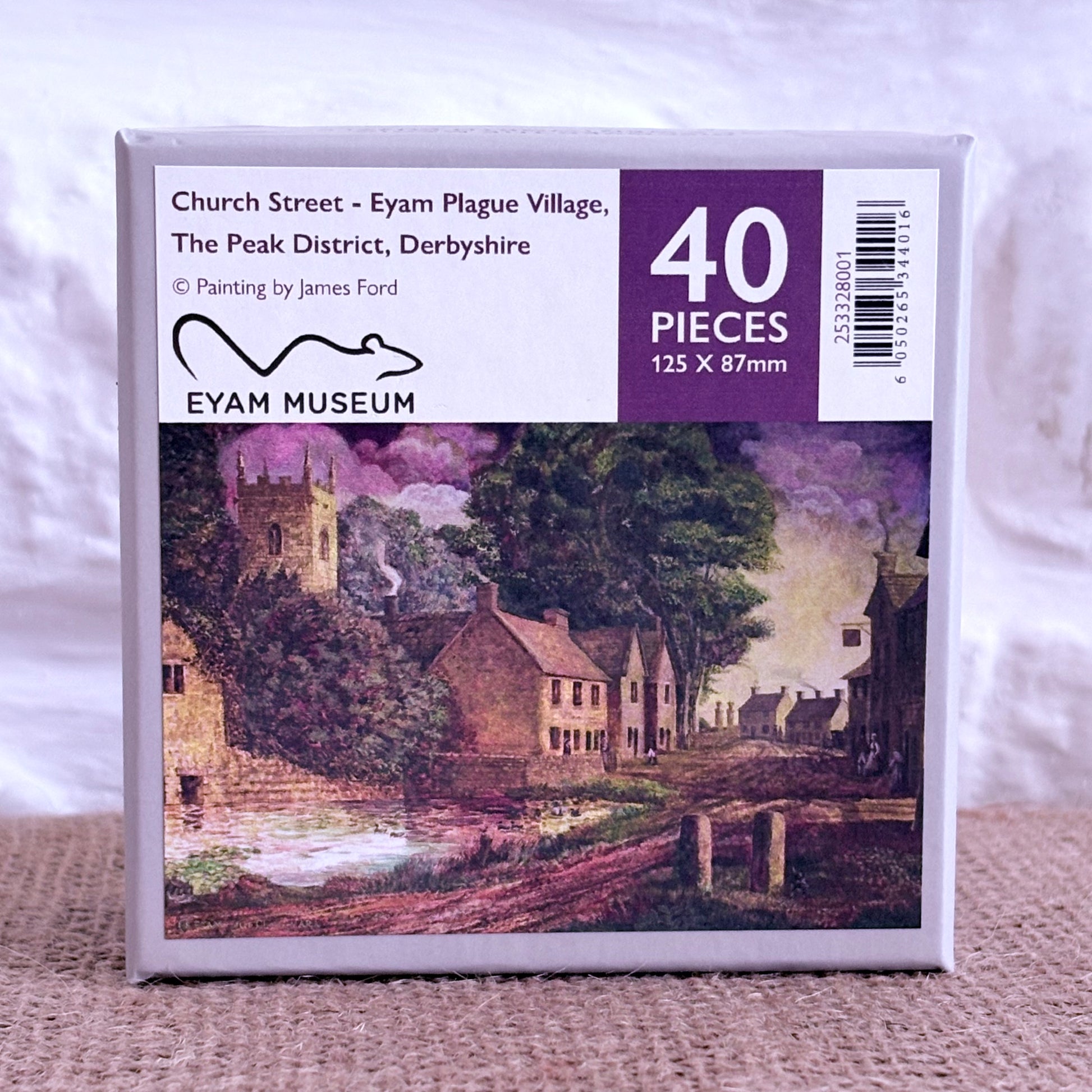 This 40 piece premium wooden jigsaw, made by Wentworth Wooden Puzzles shows Eyam Church and the Plague Cottages in days gone by.